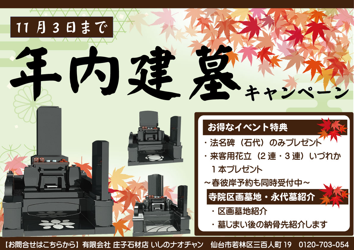 いしのナオチャンでは、このたび「年内建墓キャンペーン」を開催いたします。